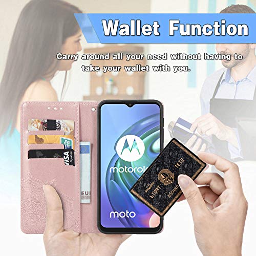 Wuzixi Wallet Cover per Motorola Moto G10/G30. Funzione Stand, Slot Cart, Flip Caso Pelle PU Bumper Custodia con, Case Custodia per Motorola Moto G10/G30.Oro Rosa