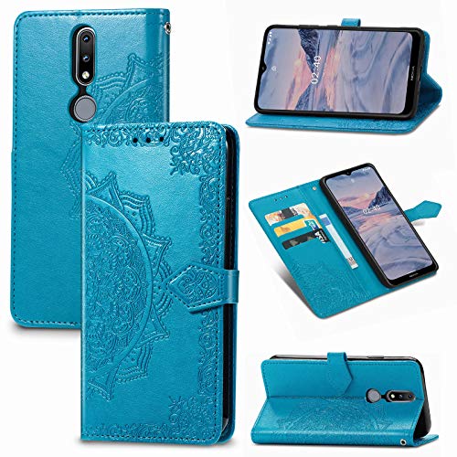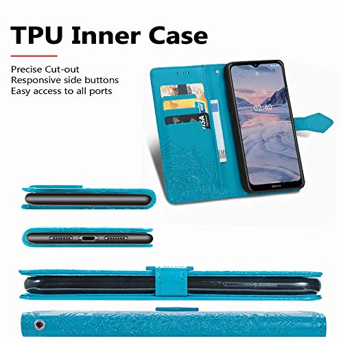 Wuzixi Wallet Cover per Nokia 2.4. Funzione Stand, Slot Cart, Flip Caso Pelle PU Bumper Custodia con, Case Custodia per Nokia 2.4.Blu