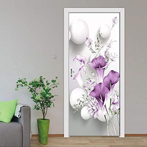 WWEIZNN Adesivi Per Porte Interne 3D Fiore Viola Di Calla 88X200Cm Soggiorno Camera Da Letto Da Parati In Pvc Arte Autoadesivo Impermeabile Complementi Arredo Casa Poster Murale