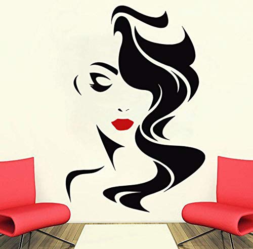Wwwff Adesivo murale salone di bellezza per donna labbra rosse adesivi in vinile parrucchiere interno parrucchiere parrucchiere barbiere adesivo vetrina 57x85 cm