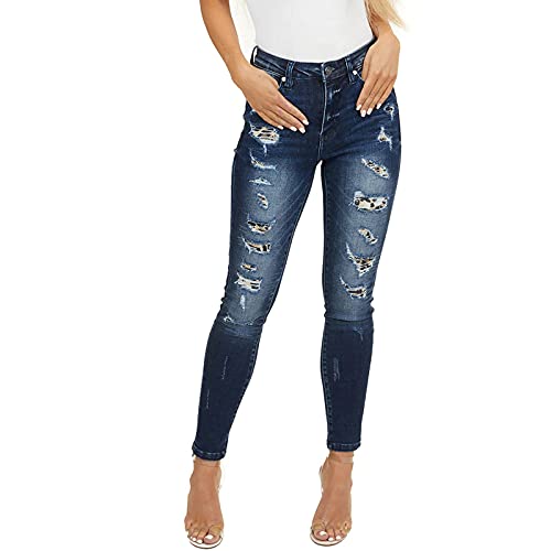 WXMSJN Jeans Slim Fit con Toppa Strappata con Stampa Leopardata da Donna Estiva