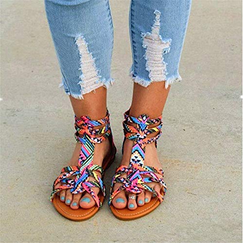 Wxyfl Sandali da Donna Summer Beach Flat Gladiator Sandali con Cinturino Infradito Scarpe Roman Open Toe Boho Infradito Sandalo Scarpe con Zip,Rosa,40