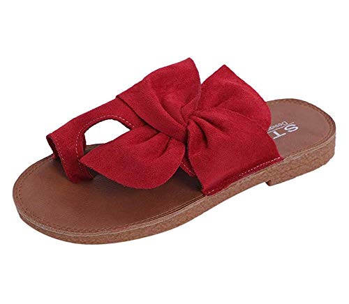 Wxyfl Sandali Piatti da Donna Bowknot Beach Comodi Sandali con Stecca Borsite con Stecca Scarpe Alluce Valgo Sandali Antidolorifici con Supporto per Arco Antiscivolo,Rosso,39