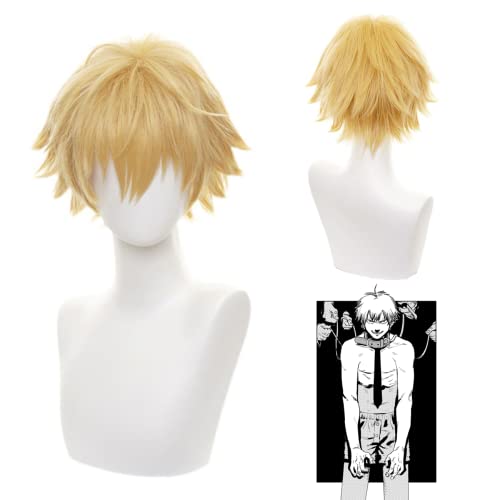 Wxypreey Denji Cosplay Parrucca Bionda Capelli Corti Parrucca Cosplay di Halloween + berretto per parrucca