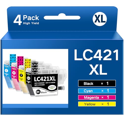 WYFYINK LC421 XL Cartucce Compatibile con Brother LC421 LC421XL per Brother DCP-J1050DW MFC-J1010DW DCP-J1140DW (Confezione da 4)