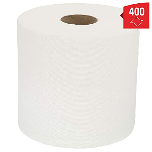 6 rotoli x 400 fogli a 1 velo, colore bianco (totale 2.400)
