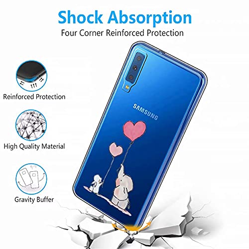 WYRHS Compatibile con Samsung Galaxy A7 2018 TPU Silicone Morbido Trasparente Custodia +1 * Protettivo in Vetro Temperato Pellicola anti Graffio Cover-Elefante