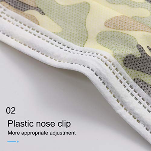 WYXlink 50Pezzi Bambini Tessuto Bocca Viso Visiera in Cotone Traspirante Antipolvere Lavabili Riutilizzabili - 3 Strati Colore Sfumato Animale Stampa 3D (Camuffare)