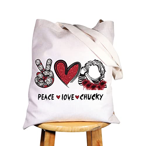 WZMPA Borsa cosmetica ispirata ai film horror, regalo ispirato alla pace, amore, film, trucco con cerniera, articolo horror (Peace Chuc Tote), Peace Chucky Tote