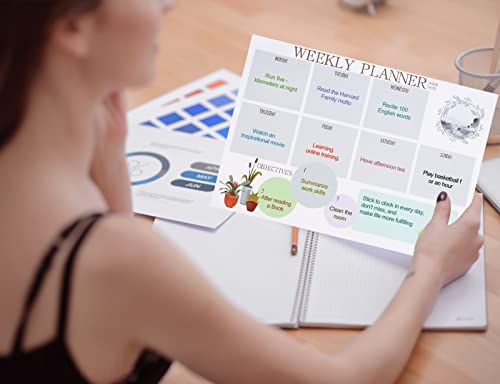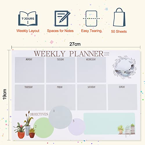 Wzone Planning da Tavolo, Planner Settimanale con Liste Delle Cose da Fare, per Agenda Appuntamenti ed Impegni, 50 Fogli a Strappo, Blu