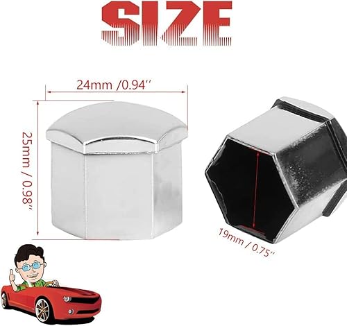Protezione: Questo copribulloni 19mm coprite i bulloni e i dadi della vostra auto, proteggeteli dalla corrosione e rendete i vecchi bulloni o dadi come nuovi. Rende il pneumatico della tua auto più bello dall'esterno.