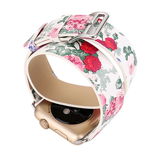 X-Cool Cinturino Apple Watch Donne Lungo Doppio Cerchio Morbida Pelle Fiore Cinturino per Apple Watch