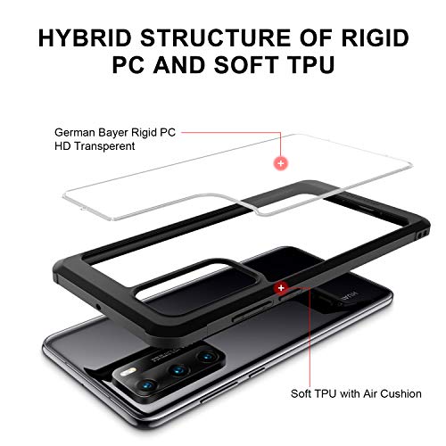 X-level Cover Huawei P40, Custodia Silicone TPU Assorbimento Shock Nero Bumper Protettiva, Angolo Airbag con Cuscino d'Aria Super Crash e Dorso Rigido Trasparente per Huawei P40