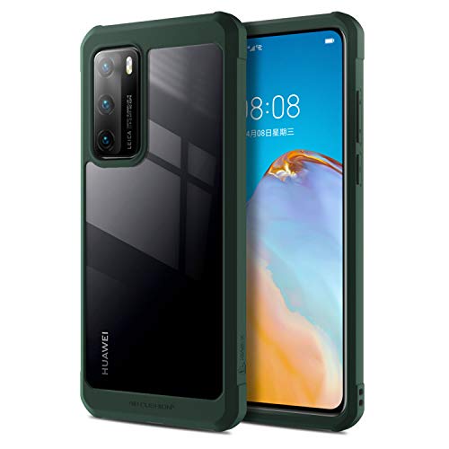 X-level Cover Huawei P40, Custodia Silicone TPU Assorbimento Shock Verde Bumper Protettiva, Angolo Airbag con Cuscino d'Aria Super Crash e Dorso Rigido Trasparente per Huawei P40