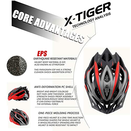 X-TIGER Casco da Bici,Ultraleggero Stabile Strada Montagna da Uomo Donna Ciclismo Casco di Bicicletta Casco Adulto Visiera Casco di Protezione Certificata CE-Rosso