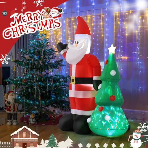 Xakay 7ft Babbo Natale con Albero di Natale Gonfiabile Gigante Luci a LED, 220cm Decorazione Natalizia Auto-esplosiva, Luminoso, Decorazioni Feste per Interni ed Esterni