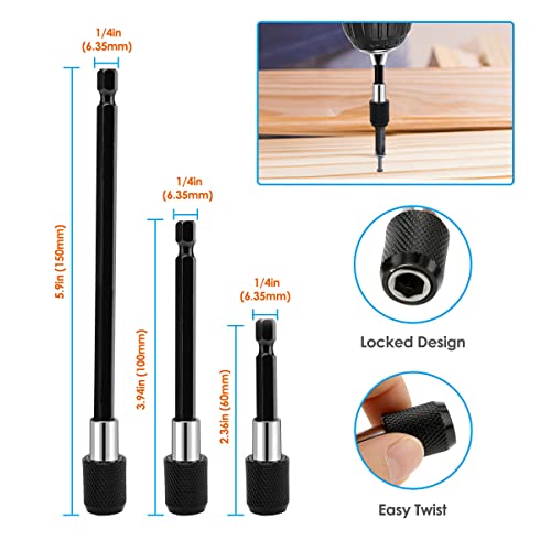 【Set di adattatori per presa universale】 Punta da trapano per cacciavite con codolo esagonale da 3 pezzi in 1/4 3/8 1/2 di pollice, con supporto per punte di prolunga per cacciavite magnetico 3 pezzi, sono ampiamente utilizzati nell'installazione di cacciavite pneumatico, cacciavite elettrico, trapano pneumatico, manuale cacciavite e altre installazioni per l'utensile esagonale. È un buon accessorio per la conversione.