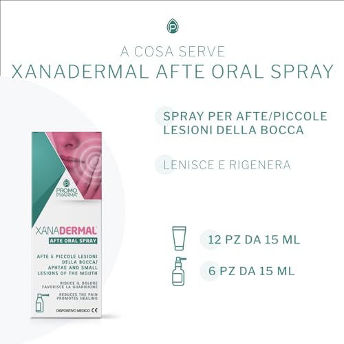 Xanadermal Afte Oral Spray - Dispositivo Medico - Gel per afte e piccole lesioni della bocca, lenisce e rigenera - con malva, liquirizia, acido ialuronico e argento colloidale - Spray 15 ml - 6 Pezzi