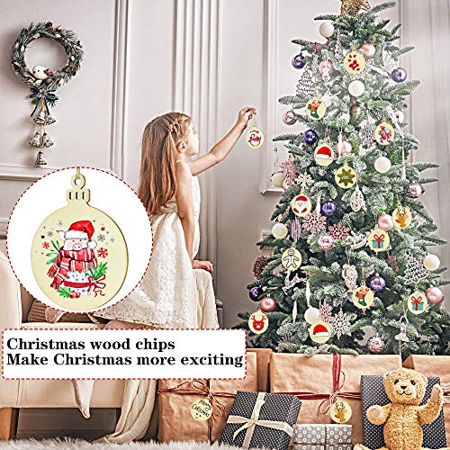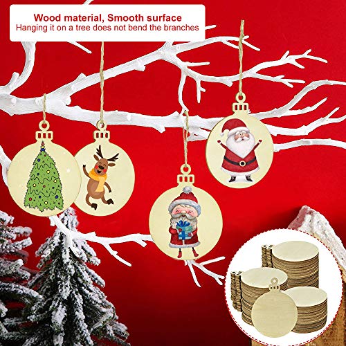 XAVSWRDE 60 Pz Rotonda in Legno Natale Pendente Ornamenti in Legno di Natale con Fori Fette di Legno Rotondo con 100 Pz Spago di Luta per Feste e Fai da Te, Etichette Regalo e da Appendere