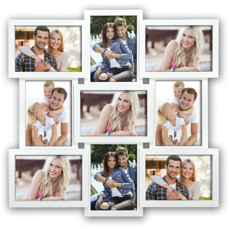 Questa galleria bianca / cornice multi foto SANTANDER in plastica attira l'attenzione nella tua casa. La cornice ha spazio per 9 foto con formato 13x18 Le foto sono montate orizzontalmente e verticalmente nella cornice del collage. Questa cornice multi foto è adatta per essere appesa al muro . La dimensione della cornice è di 51,5 x 51,5 cm . La cornice è già assemblata e pronta per essere appesa . Non è un set complesso!