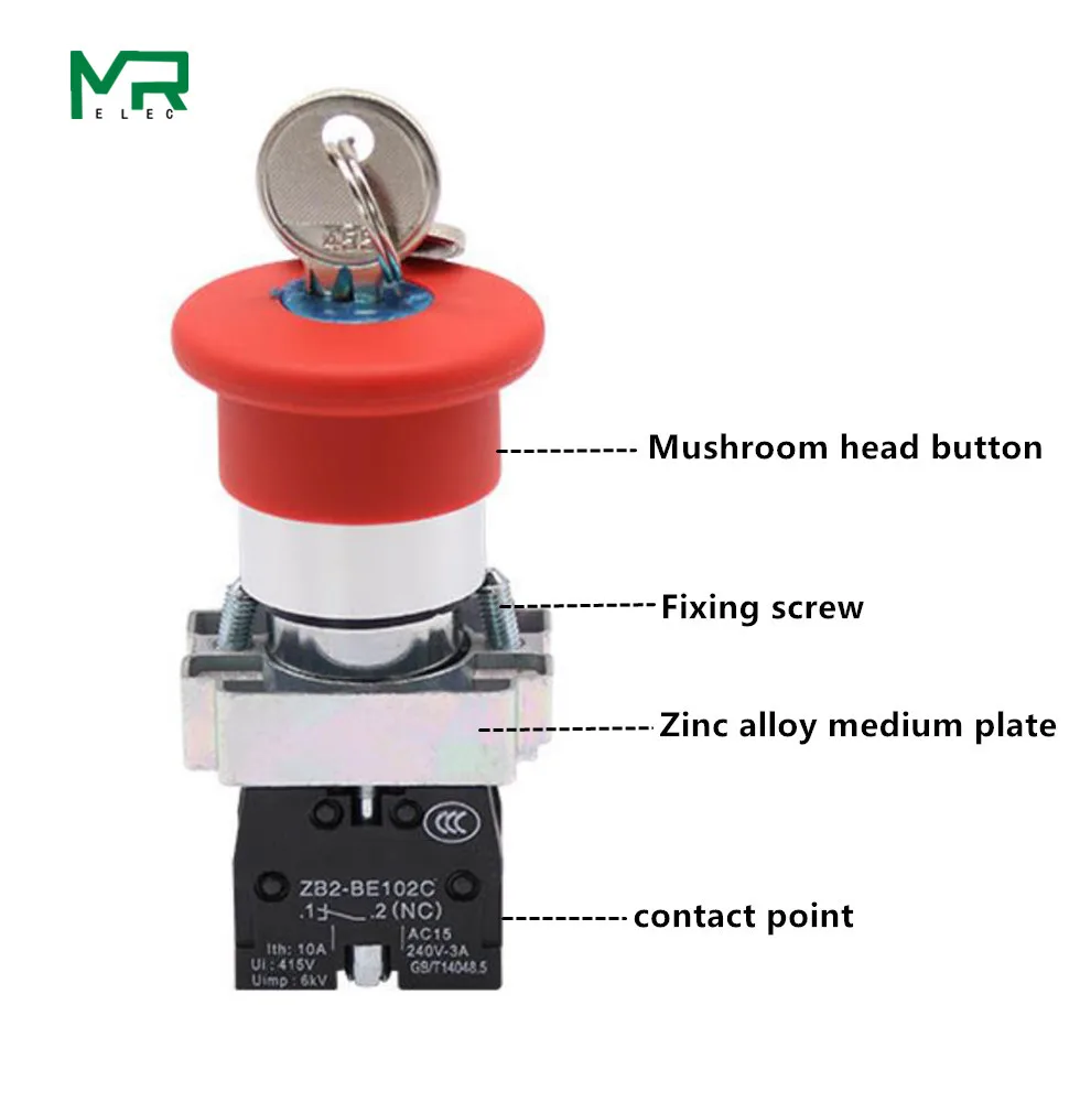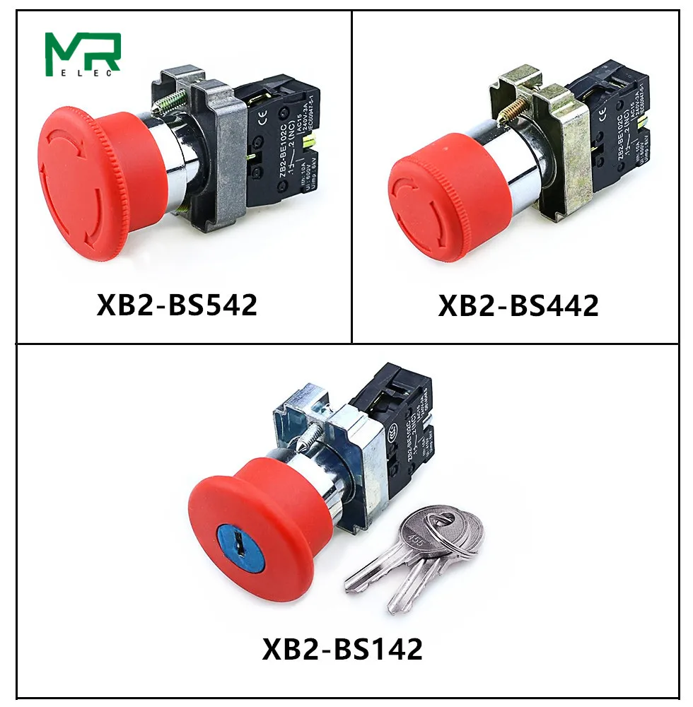 XB2-BS142 XB2-BS442 XB2-BS542 1NC key emergency stop Rotary push button switch 2 position Locking 22mm mushroom head button