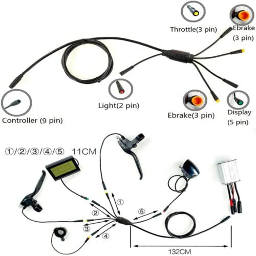 XBERSTAR Bicicletta elettrica 1T4 1T5 impermeabile cavo controller luce Ebrake acceleratore display cavo di conversione E-Bike Integrazione cavo impermeabile 1-5 per KT Controller ADE (nero)