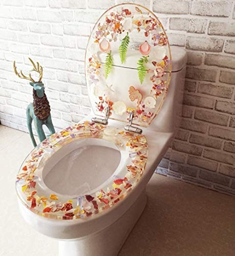 XBSXP Coprisedile per WC Sedile per WC in Resina Trasparente, Cerniera in Acciaio Inossidabile Effetto 3D, Facile da installare, WC Universale U/O/V, Shell-Upperfixed (Colore: Shell,