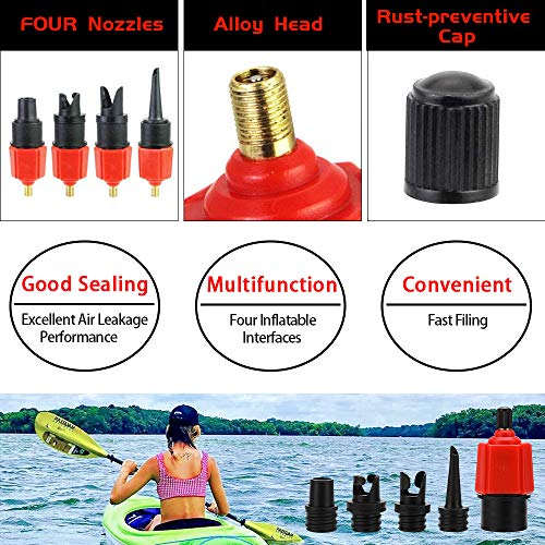 ✔ Facile conversione e gonfiaggio rapido: facile da gonfiare e sgonfiare. L'uso è molto semplice, prima selezionare il connettore appropriato in base all'interfaccia di gonfiaggio. Quindi utilizzare un compressore o una pompa per pneumatici per raggiungere facilmente il PSI raccomandato entro 5-10 minuti.La grande pompa di gonfiaggio si utilizza, il veloce il gonfiaggio.