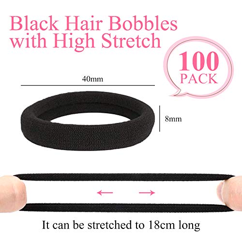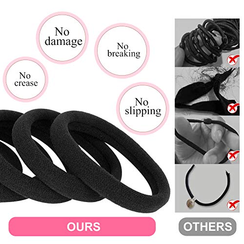 XCOZU 100 Pezzi Elastici per Capelli Nero, Morbide Fasce per Capelli per Donne, Ragazze, Bambini, Cotone Fasce Per Capelli No-metal per Capelli Pesanti e Ricci (40 x 8 mm)