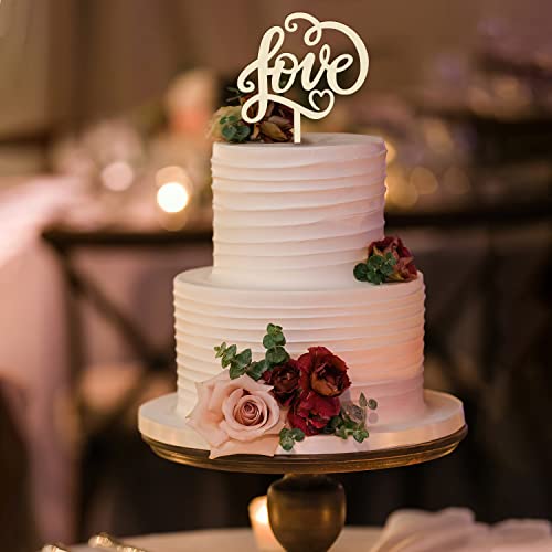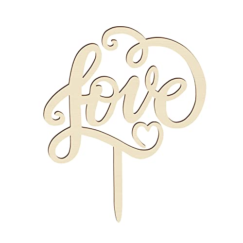 XCOZU Love Cake Topper, Topper per Torta Nuziale in Legno, Decorazioni per Torte per Torta Matrimonio Anniversario, Cake Topper per Fidanzamento e Compleanno, Cupcake Toppers per Feste