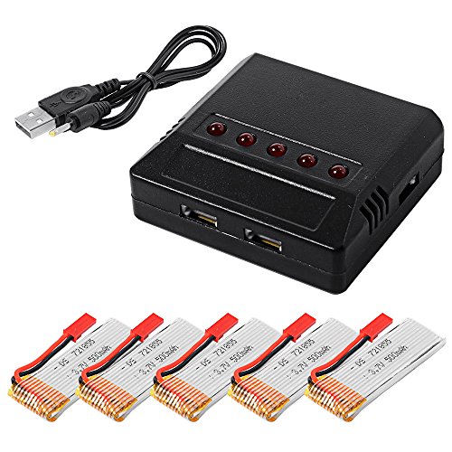 XCSOURCE 5pcs 3.7V 500mAh LiPo Battery + 5in1 caricabatteria + Conversione Cavi per UDI U818A U818A-1 U817 U817A RC 182