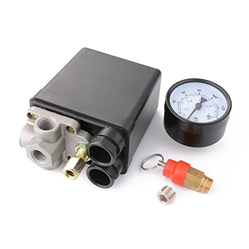 XCSOURCE compressore d'Aria a Pressione Interruttore di Controllo Heavy Duty monofase 4 Porte Nero 220V 20A 0.8MPa con calibri Valvola di Sicurezza HS599