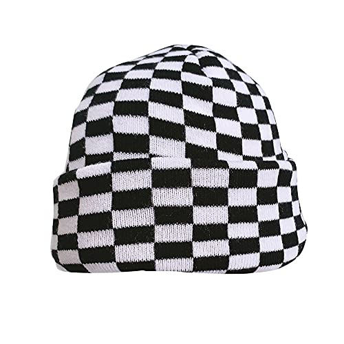 XCSSKG Cappelli invernali da donna con stampa di mucca a scacchi a scacchiera, berretto lavorato a maglia, morbido e caldo, con teschio, colore 1