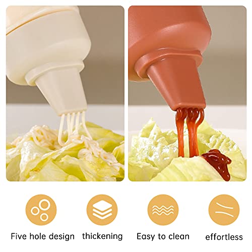 XCWTBL Flacone da spremere, 2 pezzi, con cappuccio, Condiment, 350 ml, dosatore per sciroppo d'acero, dispenser per ketchup, trasparente, senza perdite, per casa e ristorante, rosso e bianco crema