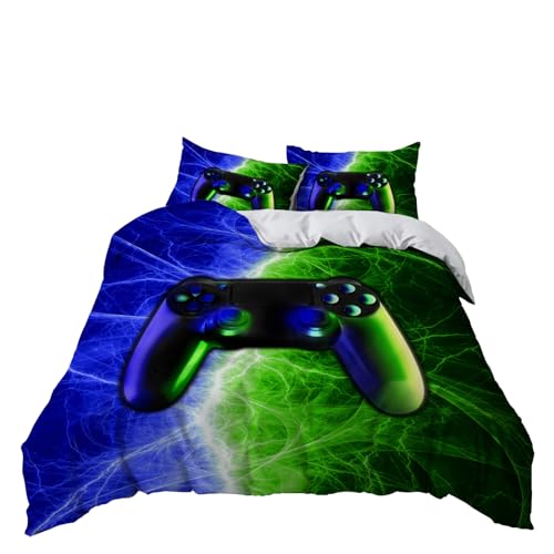 XCWYF Set Copripiumino Matrimoniale controller di gioco verde Stampa Bedding Set 260x240 cm, Anti-Allergico Caldo Cosy Soft Microfibra Set Di Biancheria Da Letto