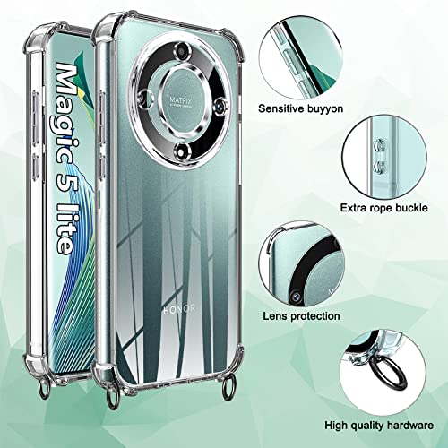XCYYOO Cover con Cordino Honor Magic 5 Lite 5G Custodia Catena Cellulare Girocollo Tracolla,Collana Laccio Telefono Honor Magic 5 Lite Necklace Cordoncino Practical Trasparente Silicone Antiurto Case