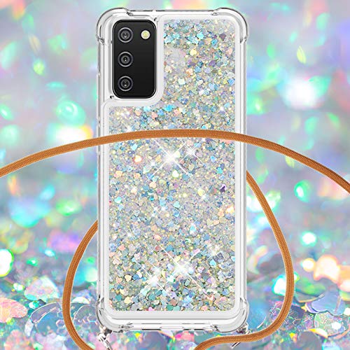 XCYYOO Custodia Lanyard Cell Phone Neck Strap Caso per Samsung Galaxy A02S della Copertura [Glitter Quicksand Dinamico Liquid] Morbido Gel Gomma TPU Antiurto Protezione Cover