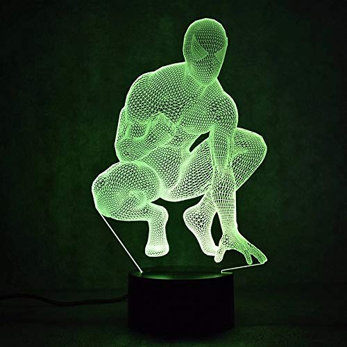 Xdorra Spider man 3D lampade da notte per camera da letto, lampada Illusione 3D LED luce notturna, 7 tasti di colore tasto decorazione tavolo ottico luci notturne luce notturna luminosa lampada da