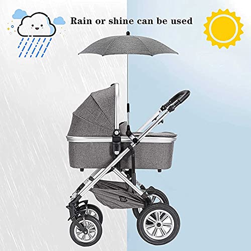 Protezione UV SPF 50+: la combinazione di protezione a tre strati di superficie ombrello da passeggio per ombrellone (rivestimento impermeabile + tessuto ad alta densità + rivestimento in vinile), SPF 50+. L'ombrello del passeggino si apre con un diametro di 85 cm e 360 ° protegge il bambino dai dannosi raggi ultravioletti.