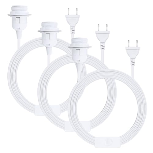 XEERUN 3 pezzi portalampada E27 con interruttore, Adattatore per bottiglia E27 Con Spina, cavo 3,5m per lampada anello filettato portalampade a sospensione - bianco