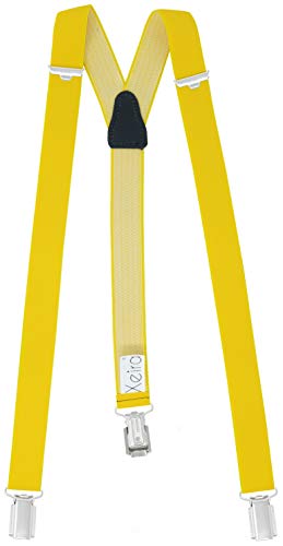 Xeira Bretelle uni larghe 25mm uomo e donna con 3 clip e retro in vera pelle - Made in Germany (Standard - 110cm, giallo1092)