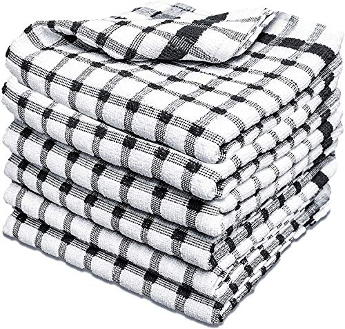 Xelay - Canovacci asciugapiatti per la cucina in cotone egiziano, morbidi, colore: nero/bianco, confezione da 3, 4, 5, 6, 10, 15 - 35cm x 60cm, filato, Black Pack of 3, 14" x 24"