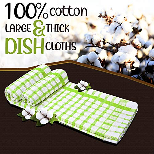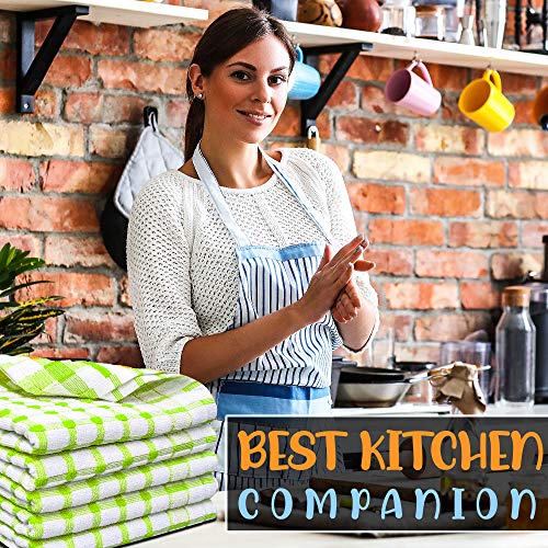Xelay - Canovacci asciugapiatti per la cucina in cotone egiziano, morbidi, colore: nero/bianco, confezione da 3, 4, 5, 6, 10, 15 - 35cm x 60cm, filato, Green Pack of 6, 14" x 24"