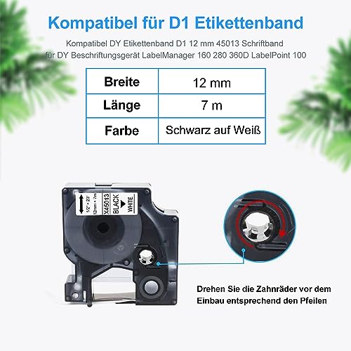 Xemax Compatibile Nastro 12mm x 7m Sostituzione per Dymo 45013 S0720530 Nero su Bianco Cassette per LabelManager 120P 160 210D 280 350 420P 500TS PC II PnP, LabelPoint 150 250 300 400 450 Duo, 5 Pacco