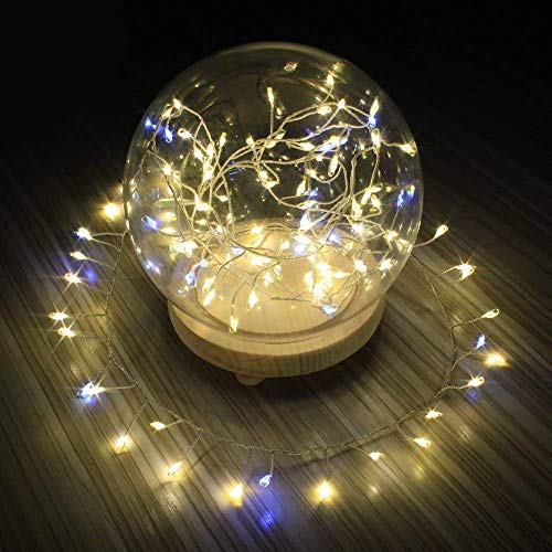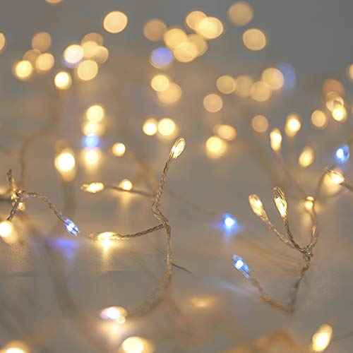 XEMQENER Luci Stringa 120 LED sul Cavo d'Argento di 2m Impermeabile Catena di Luci per Interni e Esterni, Casa, Feste, Matrimonio, DIY, Natale (Bianco Caldo & LED Infiammante)