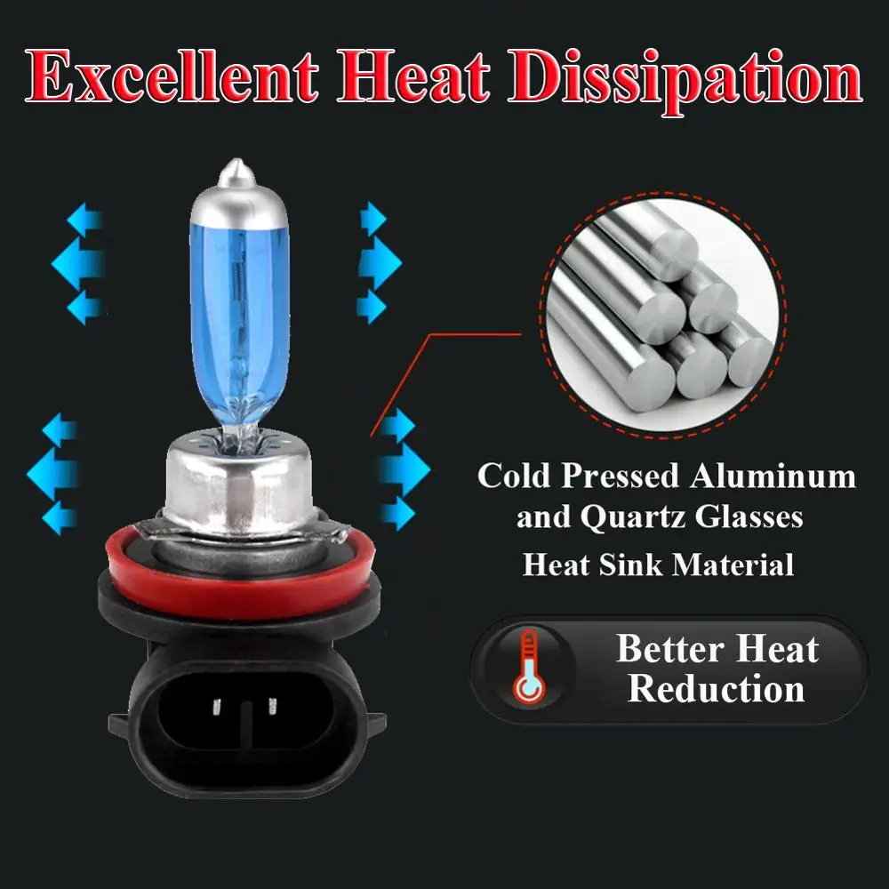 2 pcs H11 12V 55W Xenon Light White 5000k Halogen Blue Car Headlight Lamp Globes Bulb HID