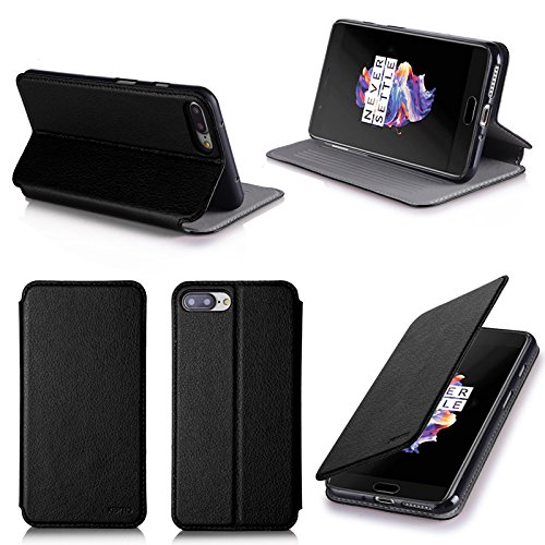 XEPTIO Nera Custodia Pelle per OnePlus 5 2017/2018 4G/LTE Dual Sim Smartphone - Flip Case Funda Cover Protettiva One Plus 5 (PU Pelle - Nero/Black) Accessori