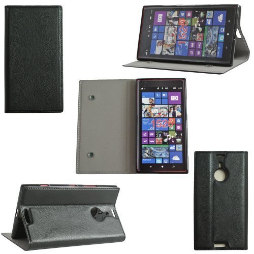 Nera Custodia Pelle Ultra Slim per Nokia 1520 con stand