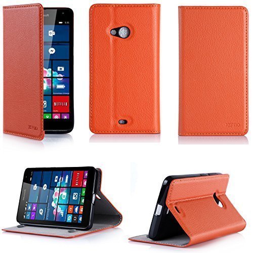 XEPTIO Orange Custodia Pelle Ultra Slim per Microsoft Lumia 640 4G smartphone - Flip Case Funda Cover protettiva Nokia 640 4G/LTE (Accessori PU Pelle - orange)