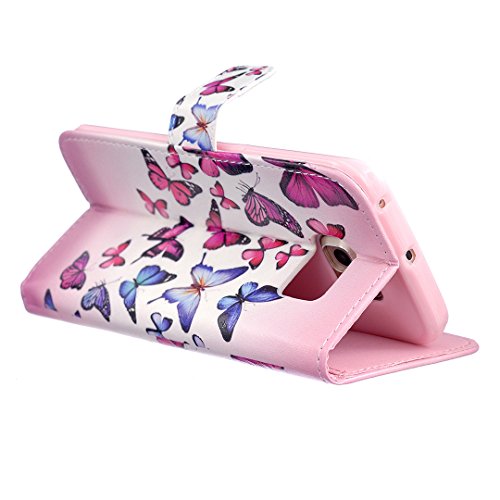 Xf-fly Custodia Cassa Di Cuoio per Samsung Galaxy S6 Edge,portafoglio / wallet / libro in pelle PU Leather e di interno morbido in TPU alta qualità con porta carte di credito Magnetica Protettiva Cover Flip Case per Samsung Galaxy S6 Edge (farfalla colorata)